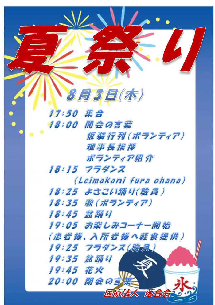 医療法人落合会 夏祭り開催のお知らせ