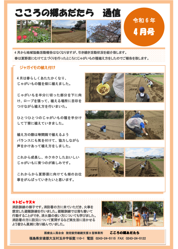 「こころの郷あだたら通信4月号」発行のお知らせ