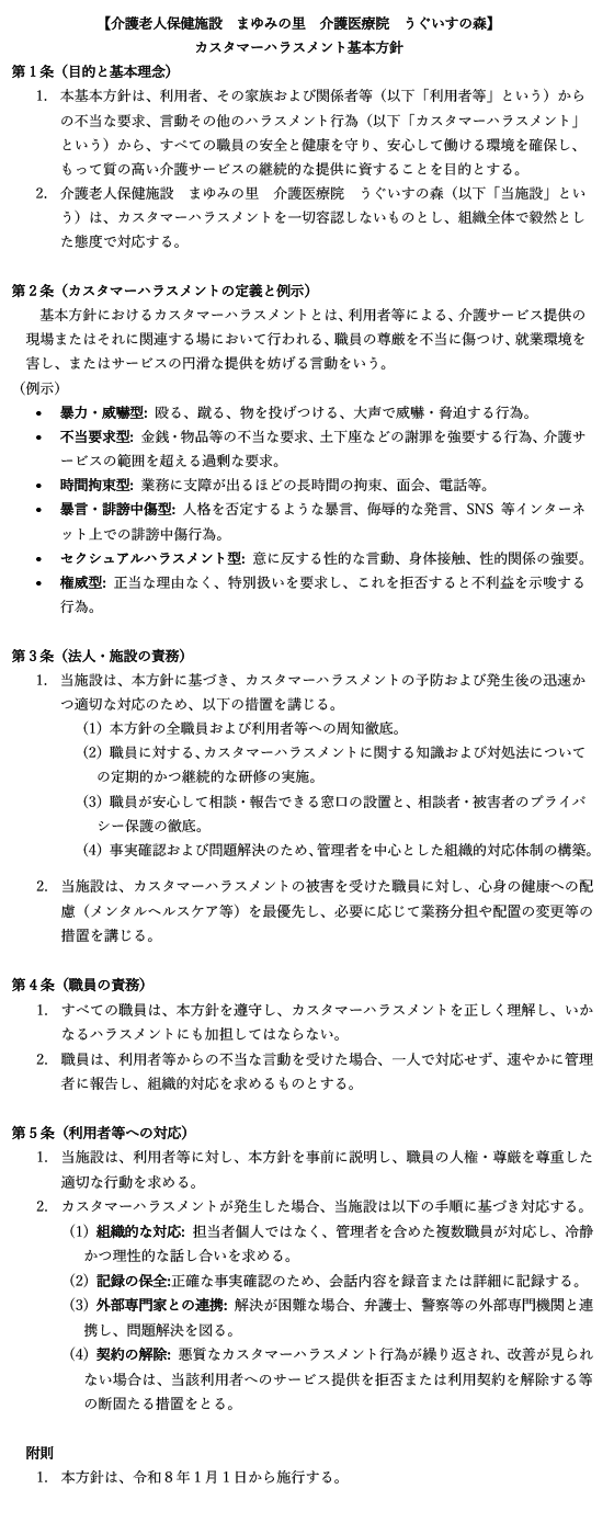 カスタマーハラスメント基本方針(まゆみの里・うぐいすの森)